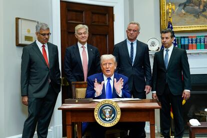 «Estamos subsidiando la atención médica de otros países, de países donde pagaron una pequeña fracción por el mismo medicamento que nosotros pagamos muchísimo más, y ya no toleraremos la especulación ni la manipulación de precios de las grandes farmacéuticas», sostuvo Trump, de 78 años.