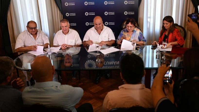 La tarde del jueves, el gobernador Juan Manzur, junto al vicegobernador Osvaldo Jaldo firmaron el acuerdo salarial con los gremios estatales de Tucumán. Se trata de un incremento de 60% al básico, más un 39,5 %, al de bolsillo. «Esta es la provincia que siempre buscamos con Osvaldo, con la paz social y siempre asegurando los ingresos a los trabajadores estatales», recalcó el titular del Ejecutivo. La ministra de Gobierno y Justicia, Carolina Vargas Aignasse, confirmó que todos percibirán «un mínimo de 150.000 pesos en marzo».