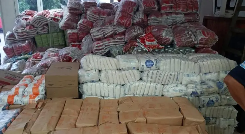 – 90 fardos de arroz (cada fardo contiene 10 unidades de 1 kg c/u, haciendo un total de 9.000 kg.)