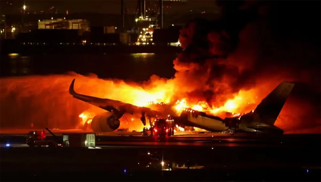 Un avión de la compañía Japan Airlines se incendió a los segundos de iniciar su aterrizaje, en el aeropuerto de Haneda, en Japón. Los primeros informes sostienen que chocó con un avión guardacostas, que se encontraba en la pista. Hay cinco desaparecidos.
