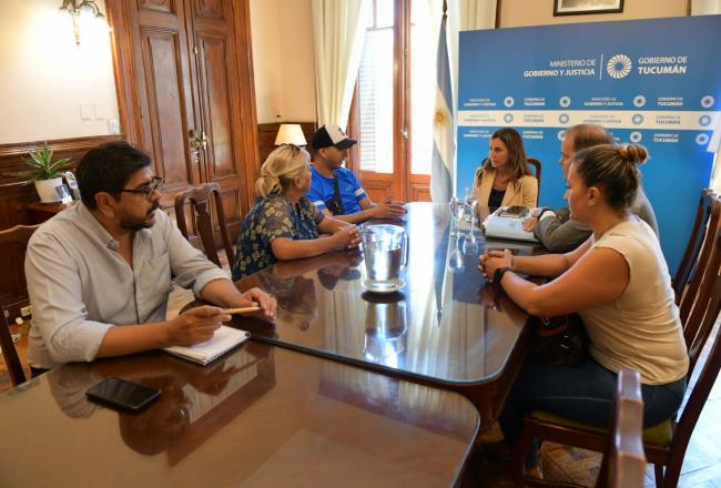 De la reunión participaron el subsecretario de Gobierno, Ramón Alcaráz; el director de Comercio Interior, Francisco Nader; y los referentes de los tucumanos afectados, Fátima De Angelis, Facundo Ortiz y Mirna Ayala.