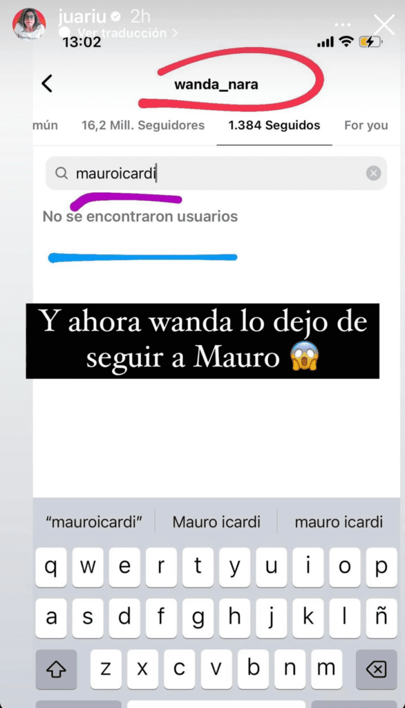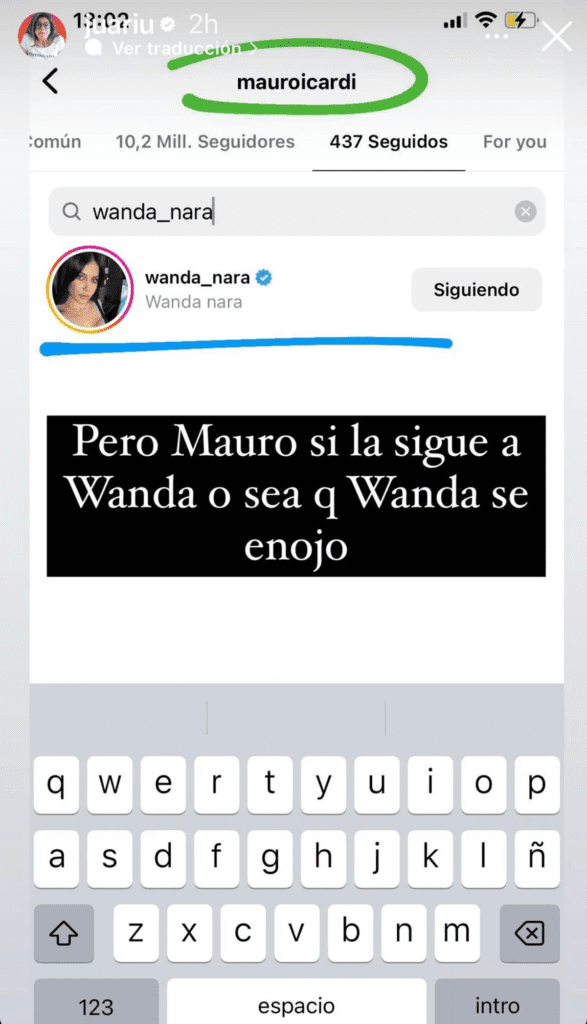 “Y ahora Wanda lo dejó de seguir a Mauro”, sentenció la instagramer desde sus historias virtuales sobre una captura de pantalla del perfil de Wanda donde se ve que Icardi ya no existe entre su lista contactos seguidos en Instagram, la red social más usada del momento.